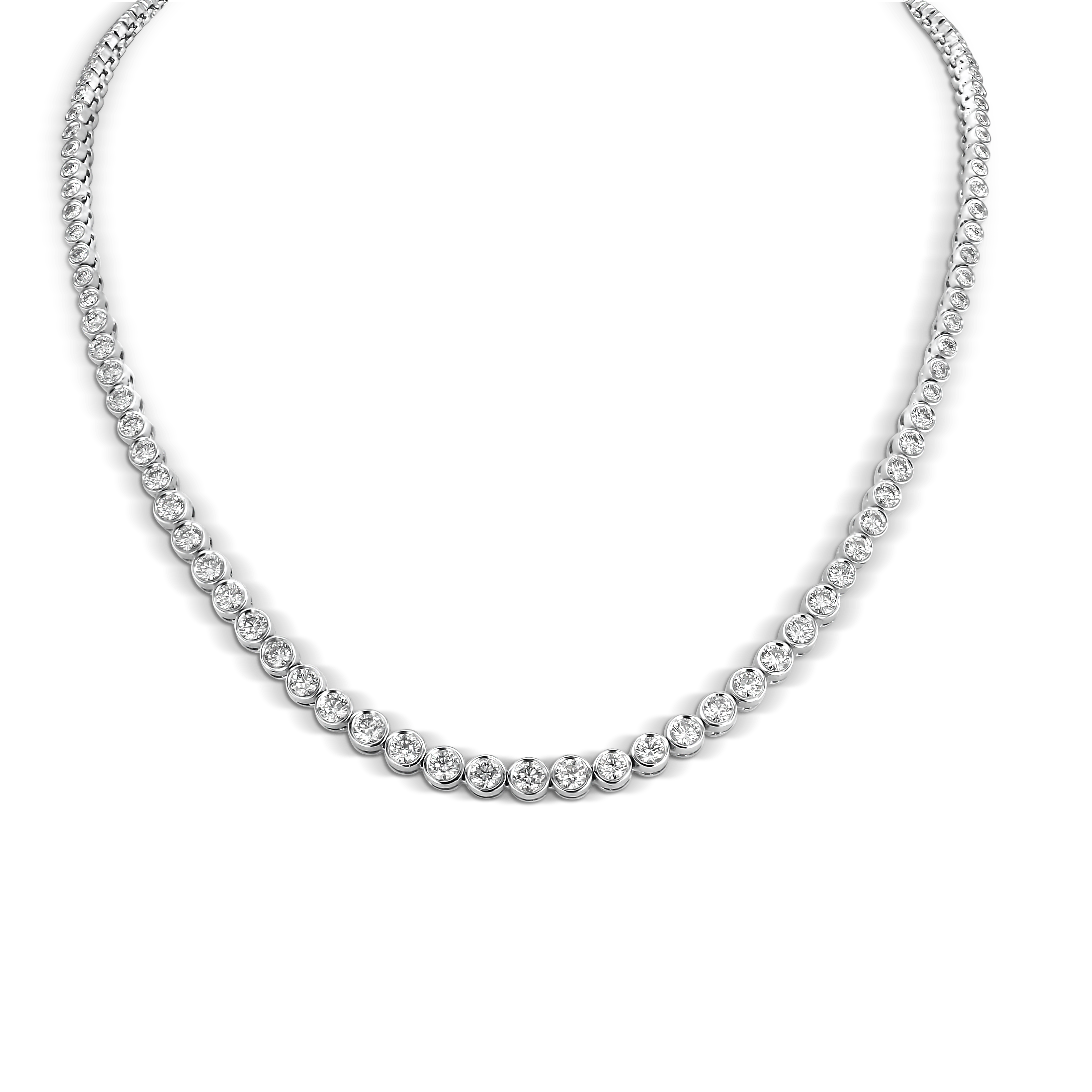 Astrid 18ct White Gold Graduated Rubover Set Diamond Tennis Necklace