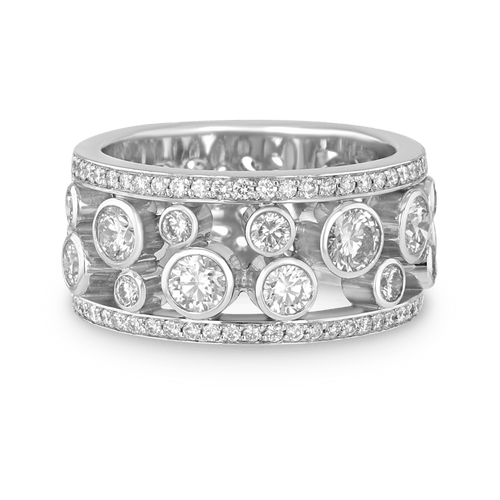 Part of our award-winning design range of Effervescent, this ring has been designed by Vikki, designer, and daughter of Catherine Best. The pendant in the design has been awarded Gold in the prestigious Goldsmiths’ Craft & Design Council Awards in the Production Jewellery category. Hand crafted in platinum and set meticulously with 2.24ct of diamonds of Gvs quality, complete the look with our matching earrings or pendant in this stunning collection.