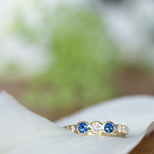 A design which is as old as love itself, the classic 3 stone ring design is celebrated here in a contemporary twist with diamonds added to the shoulders of the ring to catch the light beautifully as the love of your life glides through the room. A perfect celebration of the love only the two of your experience together.